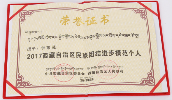 2017年9月,由中共西藏自治区委员会指导,西藏自治区人民政府主办的“2017年西藏自治区民族团结进步表彰大会”颁奖仪式隆重开幕。在当天的会议颁奖典礼上,藏神大健康董事长李东强被评为“西藏自治区民族团结进步模范个人”。